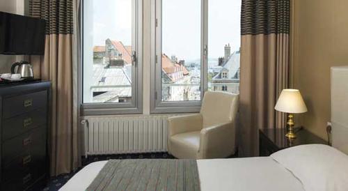 In a perfect location for hopping on and off the Dieppe-Newhaven ferry, Hotel Aguado sits in the centre of Dieppe with water on both sides, so the rooms look out over the sea or the harbour. The hotel has accueil vélo status via the local tourist board, meaning it has safe and secure bike parking and other cyclist support. Dieppe is on the Avenue Verte, the official London to Paris bike route, as well as on the EV4 Central European route. French and English spoken. Free wifi.