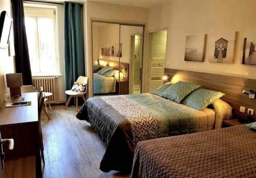 Hotel du Midi is located in the centre of historic Rodez, around 1km from the train station (direct links to Paris and Toulouse). It's in an ideal location just opposite the town’s Notre Dame Cathedral (some rooms have views of the cathedral). Breakfast buffet + onsite restaurant serving local cuisine. Free wifi. There are singles, doubles and triples, as well as a self-catering apartment option (it sleeps 5). The hotel has been recommended by cyclists who stayed there.