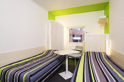 Basic but clean and cheap option for cyclists passing through Besançon. Wifi. 24-hour reception. Rooms include TV, hairdryer and cable/satellite TV. Rooms are doubles and triples with sinks. Bathrooms located a few metres down the hall. Management says there is a lockable room to store bikes overnight. The hotel's parent website has a best-price guarantee so it's always worth comparing prices.