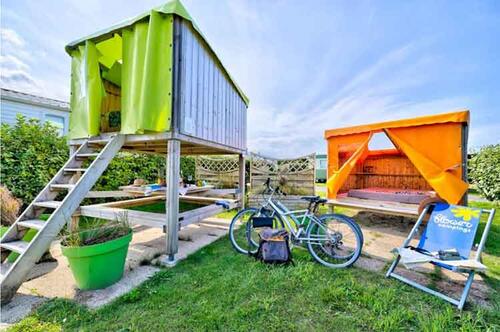 Campsite with tent pitches and cabins right on the D-Day Beaches