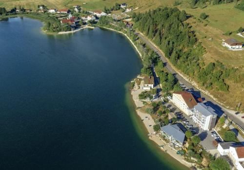 Logis Hôtel de l'Abbaye is set spectacularly on the shores of Lac de l'Abbaye in the Jura Mountains. It really is a stunning setting and a wonderful base for cycling. Wake up to wonderful views from your room, or enjoy the vista during breakfast or over an evening meal in the hotel restaurant. The chefs here serve up locally made and sourced meals, including fish from the lake. Note that on quieter days of the week – namely Mondays and Tuesdays – the restaurant only has one set menu and you need to book in advance, so phone ahead of you are arriving on these days. The hotel is part of the bike-friendly Logis network of independent hotels. The town of Morbier – famous for its cheese – is around 17km away. Free wifi throughout the hotel. Free parking for cars + you can take part in local activities for free, including fishing in the lake for free.