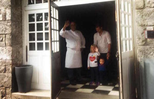Situated in the historic old town of Domfront, the Hotel de France is a perfect base for both the Veloscenic and La Velo Francette. Don't let its bright red signage and strip motel appearance put you off. Hotel de France's rather banal facade hides a multitude of delights. Not least, the welcoming family-run vibe with everyone – from the grandchild to the dog – featured in the picture. There's safe and secure bike storage in a curtained-off section of the dining hall. There's a laundry service for bike clothes, free wifi and the owners are only too ready to help prepare food for your onward journey.
