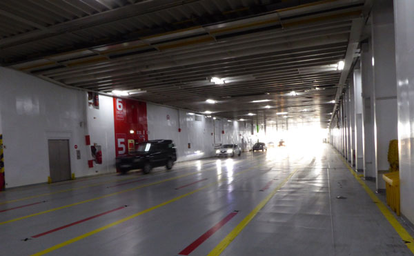 4. Disembarking at Calais needs careful attention. I assumed there would be clear lines to follow as at the Dover side, but I found myself in a large open area crossed by lorries. I decided to follow the car exit signs for want of anything better – this almost took me onto the autoroute, which would have been illegal and quite hairy. I should have found some port staff to ask so you may want to do the same unless you receive clear instruction. (I was later told by DFDS that there should have been someone at the French end to direct cyclists to the exit).
