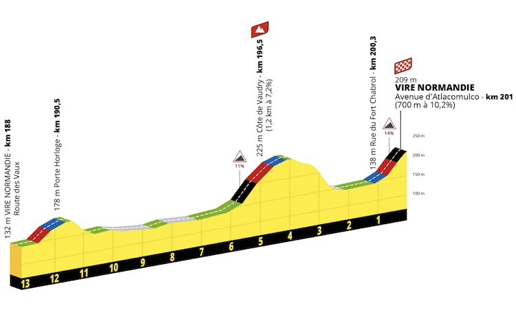 A stage through the heart of the World War II battlefields and a hilly finish in Swiss Normandie. Here are the last 13km.